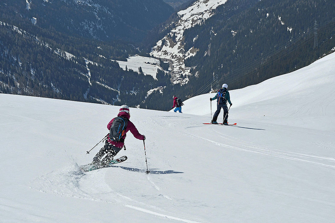 Eine wunderbare Abfahrt durch das gesamte Tal nach Lüsens lässt das Herz höher schlagen.